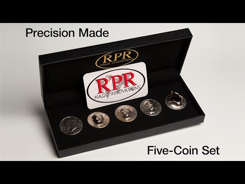 This ultimate coin magic collection includes five coins, all with matching dates: one regular Kennedy half dollar, one Protruding Kennedy with pushed-through back, one Protruding Kennedy with a flush back, one Protruding Folding Kennedy, and one 3-D Radical Karate Kennedy coin.