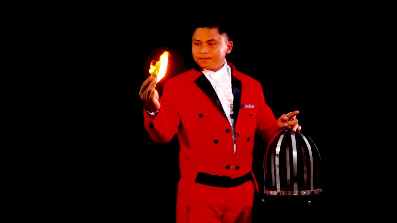 The magician shows a beautiful empty cage to the audience. Staring at the cage, he causes it to burst into flames. Suddenly the flames vanishes and a live dove appears in the cage.
