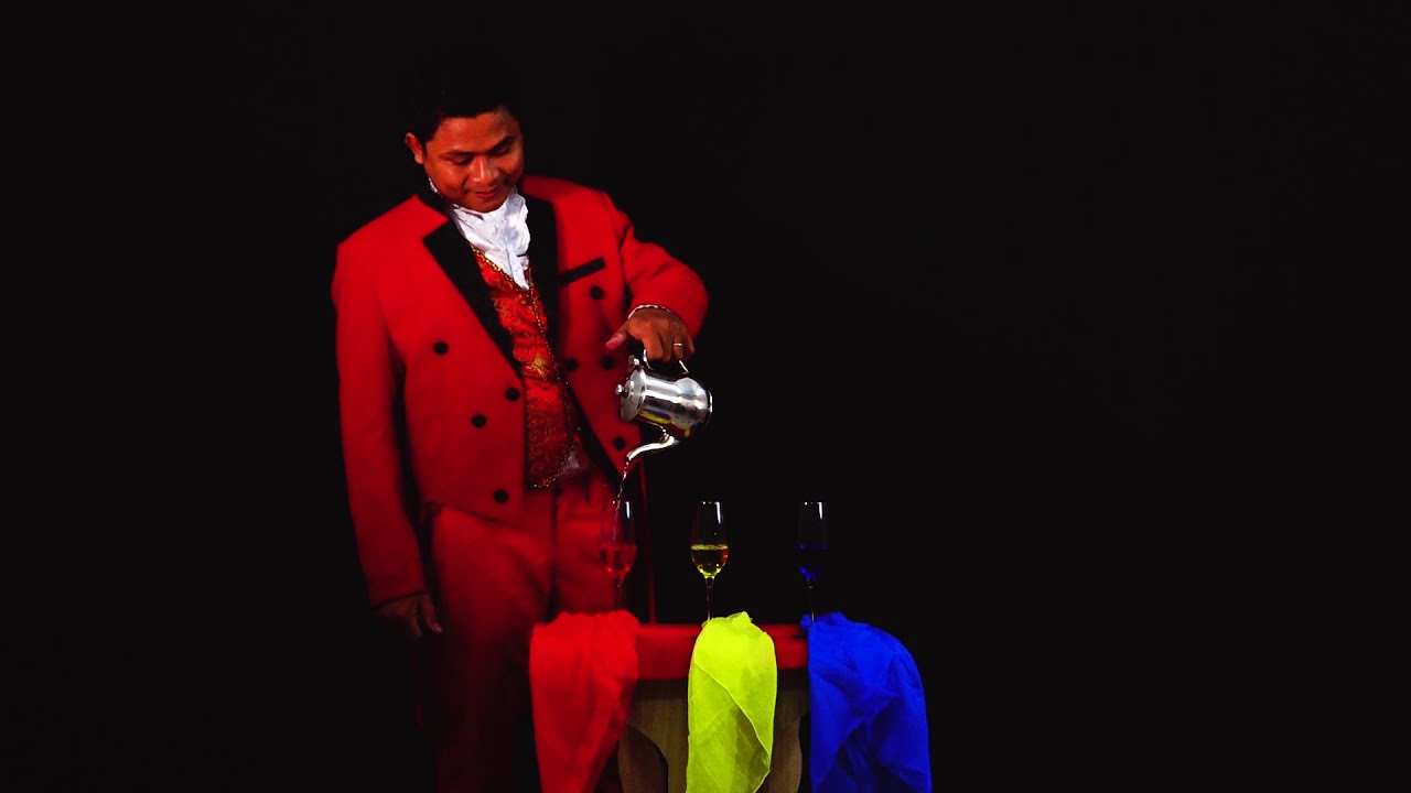 A teapot is shown to contain a blue scarf. After setting the scarf on the table, the teapot pours water into a glass shown to be filled with blue water! Two other colored scarves are produced from the teapot, followed again by the glasses filling up with water of those exact colors! Where does the water come from? Looks beautiful!Then, amazingly, other items are produced from the teapot – it feels like Infinity!