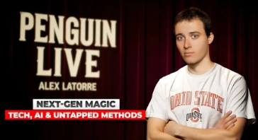 Alex also takes you through new uses of existing props you already have, and takes design and engineering thinking and uses it to create new props. You’ll learn about the Rattle Coin gimmick that started his fascination with audio illusions, and a trick that uses QR codes to reveal the exact painting someone is thinking of. This lecture is a real course in modern technology, and you don’t need to be computer savvy to get a lot of interesting information out of it. If you’ve ever thought up an application or a device, but lamented that you couldn’t make it because you didn’t have the skills, those days are over while school is in session with Alex. Learn all that and more right here at Penguin Live.