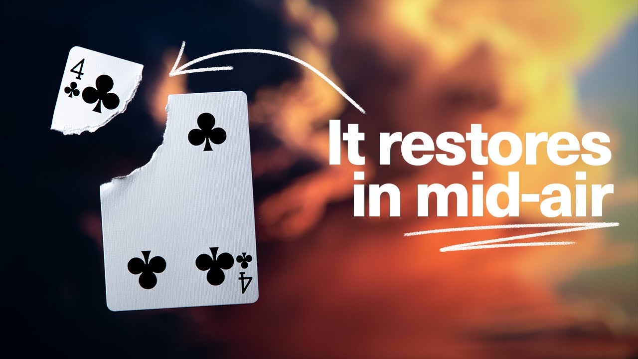 A mid-air restoration of a torn playing card – that ends totally clean.