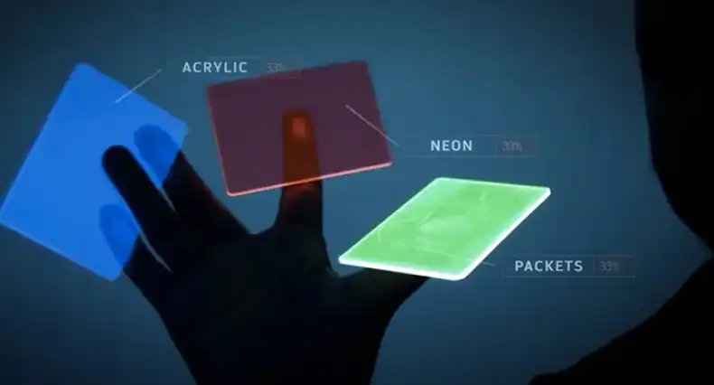 The spectator can select a card by rotating the gears in the device, either by random or with a certain card in mind. The selection can then be covered with a small topper, and can be placed on a stand so everyone can see it.