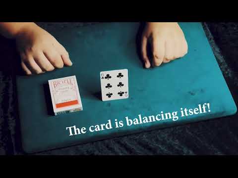 The magician takes a box of cards, places it on the card, and the card magically goes in the middle of the deck!