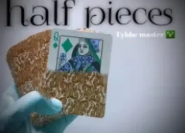 HALF PIECES is a visual effect in which a card will slowly disappear and be cut in half,
